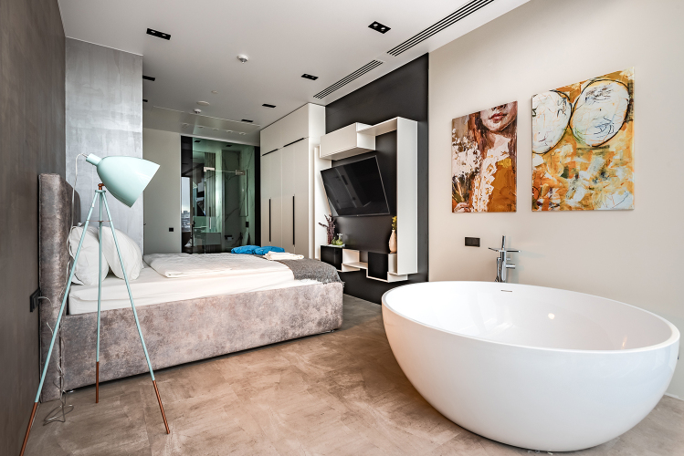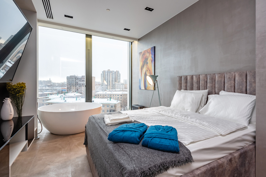 Апартаменты Neva Towers c ванной у окна,