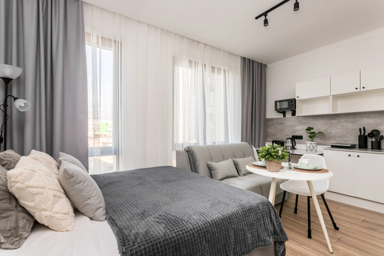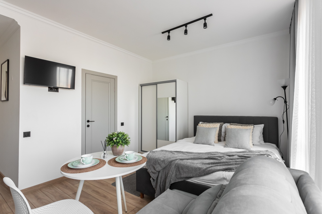 Гостиница Квартира Новая светлая студия в ЖК бизнес класса Метрополия в центре Москвы,