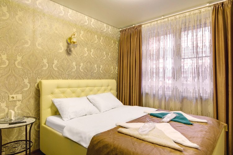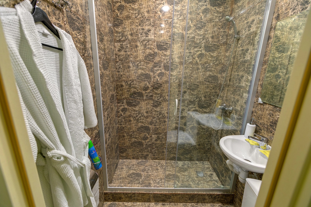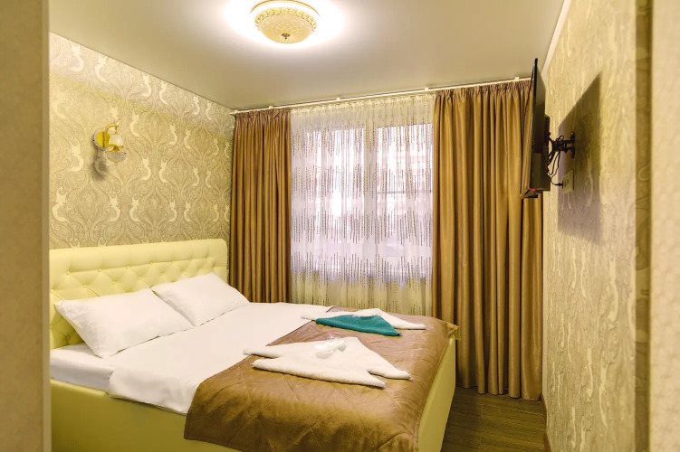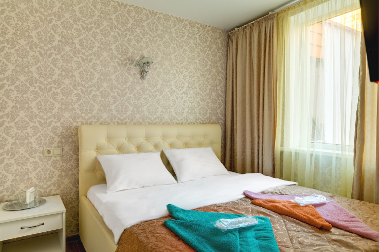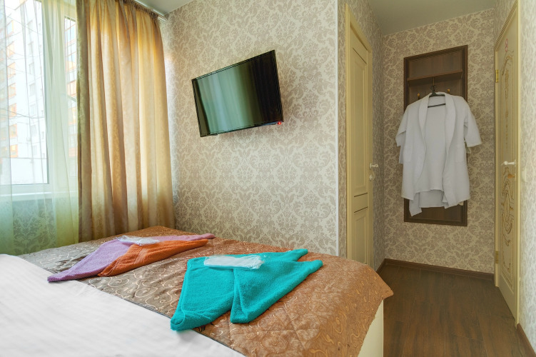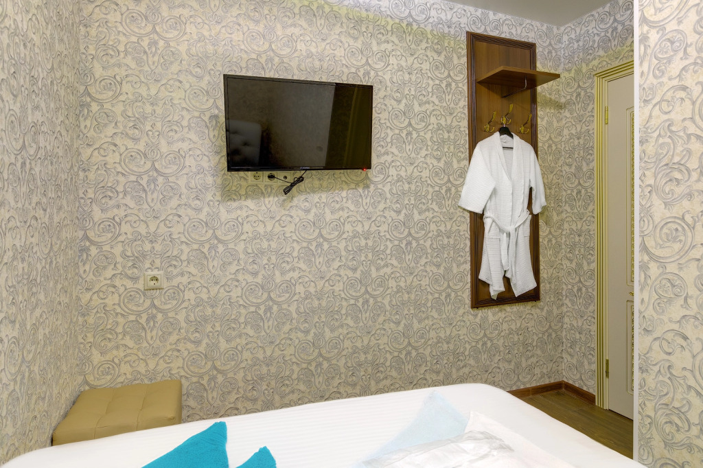 В номере вас будут ждать телевизор и халат. Оснащение зависит от выбранной категории номера.