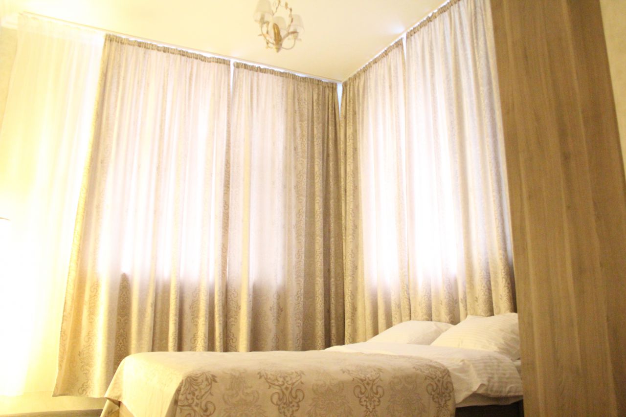 Все номера оснащены гарнитурной мебелью, большой удобной кроватью, плазменным телевизором, санузлом с банными принадлежностями высокого качества. Здесь Вы найдете все, что нужно деловому человеку: начиная от бесплатного интернета Wi Fi заканчивая сейфом. Все номера оснащены пожарной и охранной сигнализациями, обеспечивающими дополнительную безопасность нашим гостям.