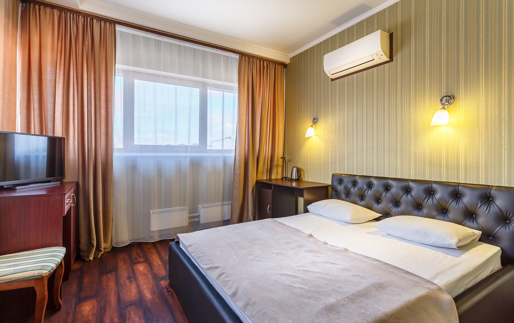 В отеле Вас ждет все необходимое для полноценного отдыха и комфортного проживания: новая мебель, удобные широкие кровати. Отель располагает 30-ми комфортабельными номерами с паркетным полом.