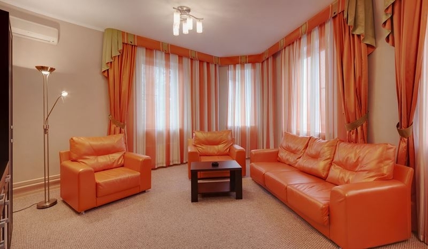 Просторный двухместный номер, состоит из гостиной и спальни. В номере: две раздельные кровати (кровати-трансформер, при необходимости трансформируется в двуспальную кровать), прикроватные тумбочки, платяной шкаф, набор мягкой мебели, ЖК телевизор в каждой комнате, холодильник, набор посуды, кондиционер, телефон с внутренней связью, сейф, фен, тапочки. Санузел с душевой кабиной, укомплектован полотенцами, гигиеническими принадлежностями (мыло, шампунь). Размещение третьего человека в номере.