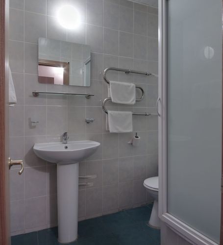 Уютный двухместный однокомнатный номер со всеми удобствами: две раздельные кровати (кровати- трансформер, при необходимости трансформируются в двуспальную кровать), прикроватные тумбочки, журнальный столик, платяной шкаф, туалетный столик с зеркалом, холодильник, телевизор, телефон с внутренней связью, тапочки. Санузел с душевой кабиной, укомплектован полотенцами, гигиеническими принадлежностями (мыло, шампунь).