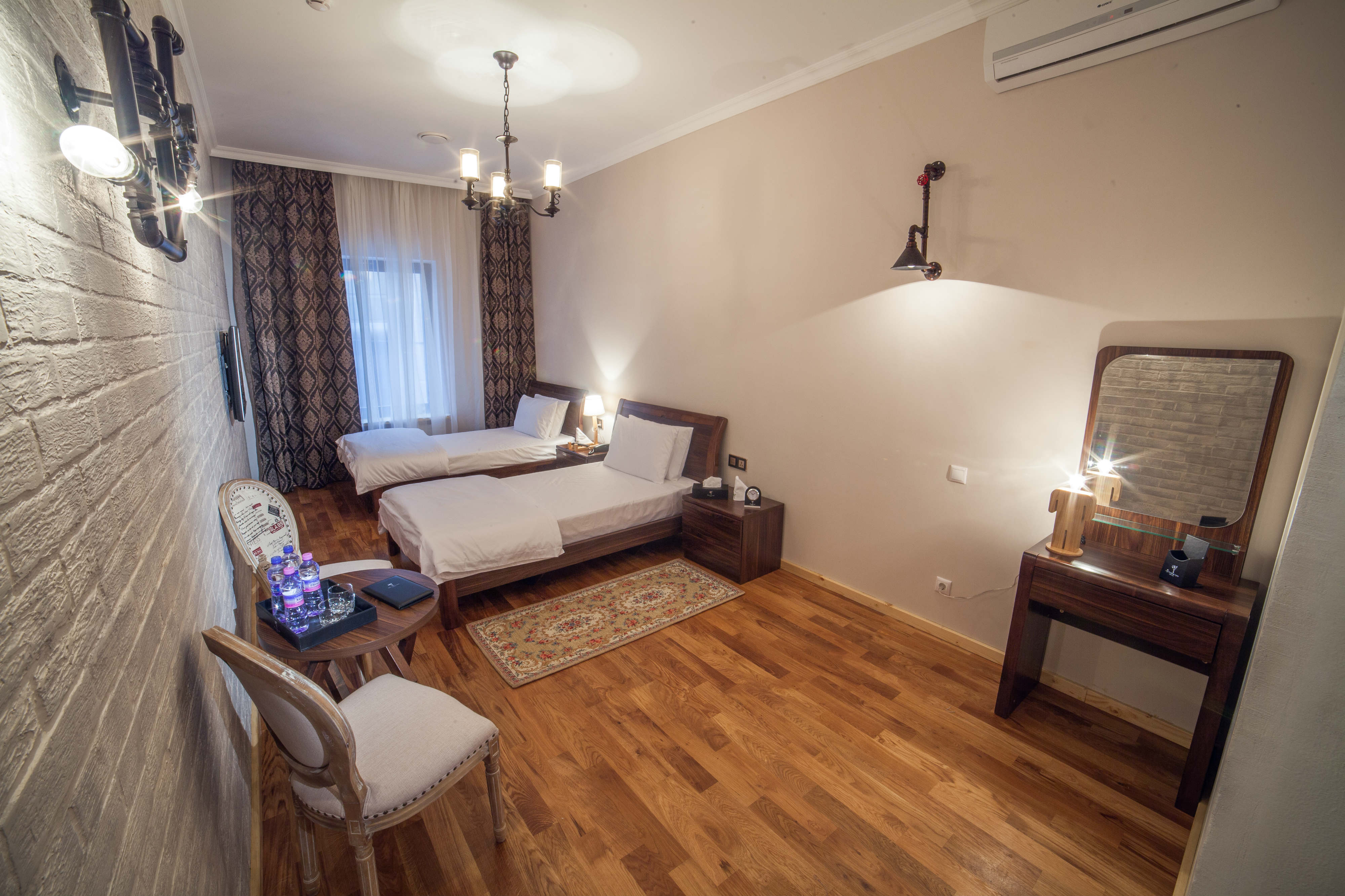 Часы работы: 24 часа в сутки. К услугам гостей: заказ трансфера, визовая поддержка, услуги секретаря, свадебный пакет, приветственная вода, чай и конфеты в номере совершенно бесплатно. В числе удобств каждого номера — кондиционер, телевизор с плоским экраном, электрический чайник и собственная ванная комната.
