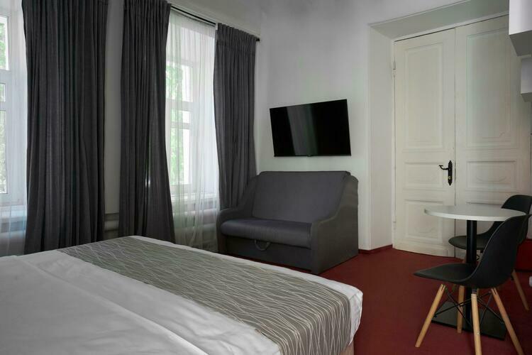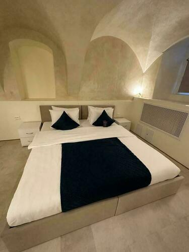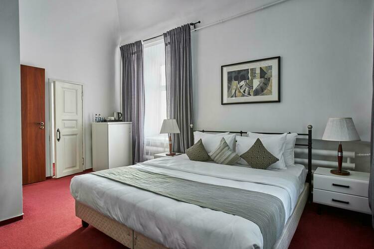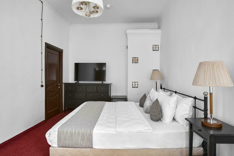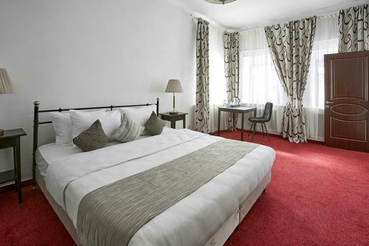 Наш номер — это уютное место, продуманное до мелочей для комфортного пребывания. Просторная комната оформлена в светлых тонах, создающих атмосферу легкости и спокойствия. Удобная двуспальная кровать с качественным постельным бельем, мягкие подушки приглашают отдохнуть после насыщенного дня. Современная техника удобна и функциональна: SMART-телевизор предлагает доступ к множеству телеканалов, а мини-бар радует разнообразием прохладительных напитков и закусок.