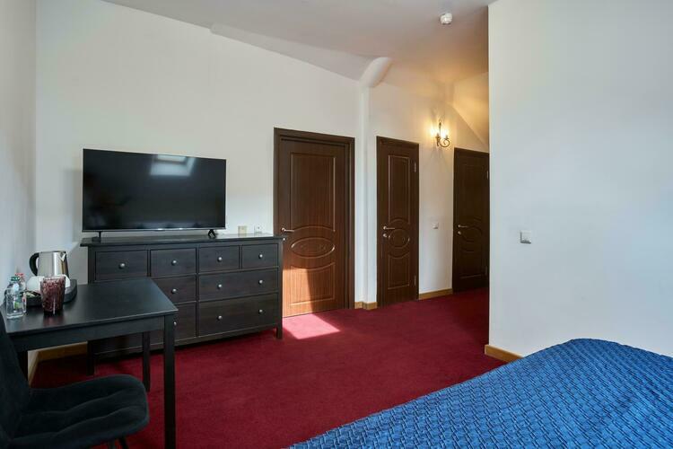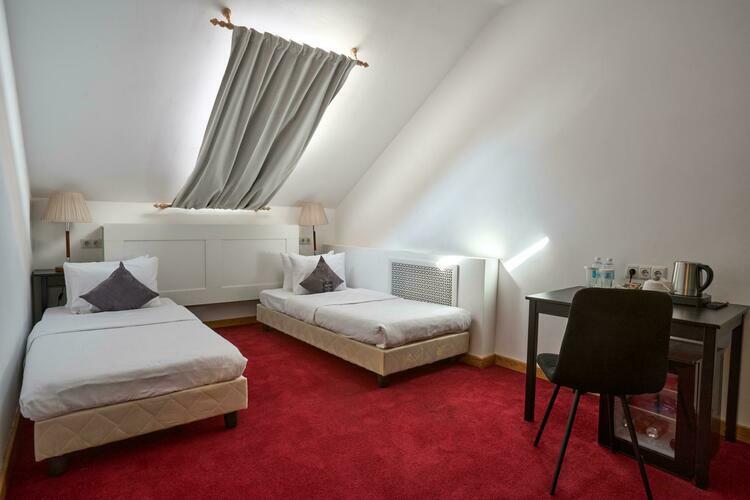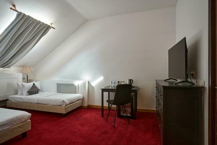двухместный мансардный номер В номере есть все необходимое для комфортного проживания: двуспальная кровать, телевизор, шкаф, санузел в номере. По предварительному запросу постели можно разделить.