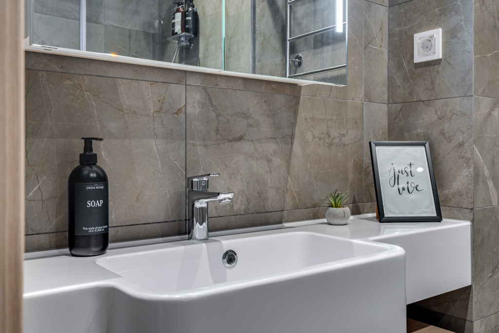 Апартаменты рассчитаны на проживание 2-3 гостей. Для удобства гостей номер оборудован кроватью King Size 180х200 см или двумя раздельными кроватями 90х200 см. Возможно предоставление одного дополнительного спального места 80х200 см. Ванная комната с просторной душевой 90x120 см, где есть полотенца, фен, туалетные принадлежности — гель для душа, шампунь, кондиционер для волос, ватные палочки и диски. Кухня оборудована бытовой техникой – чайник, холодильник с морозильной камерой, стиральная машина, индукционная варочная поверхность, вытяжка. Есть кастрюли, сковорода, дуршлаг, столовая посуда и приборы. Джемы, чай, кофе и сахар входят в welcome set для гостей.