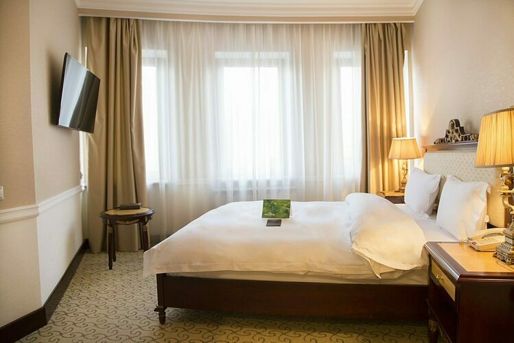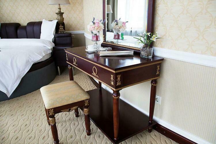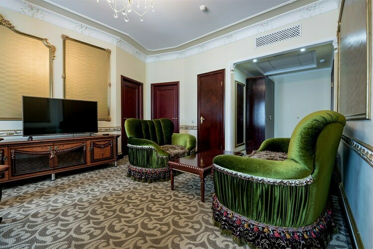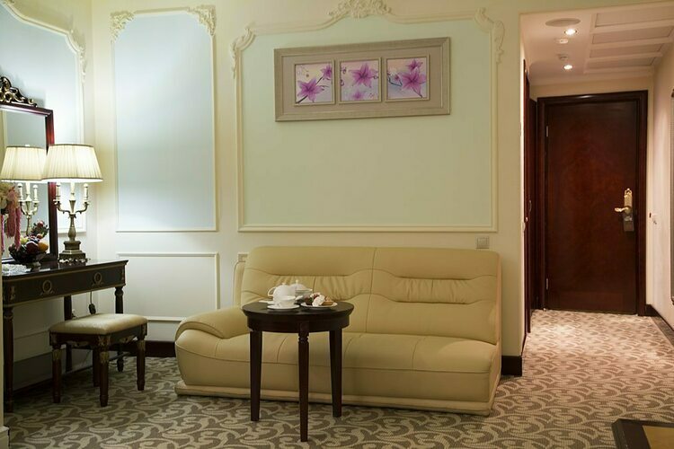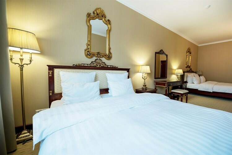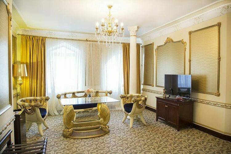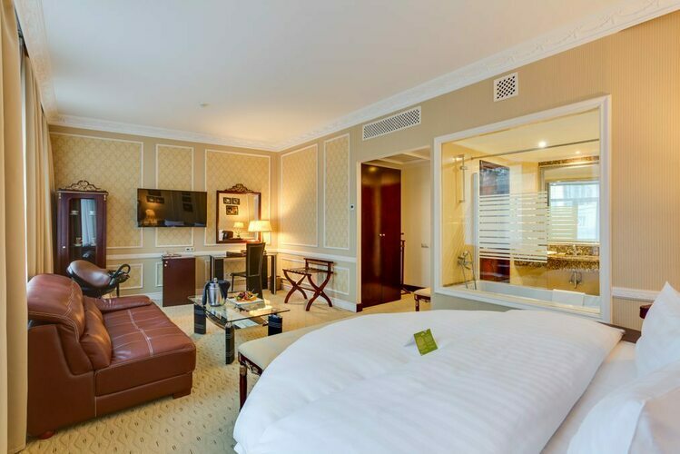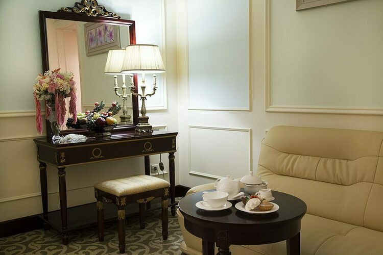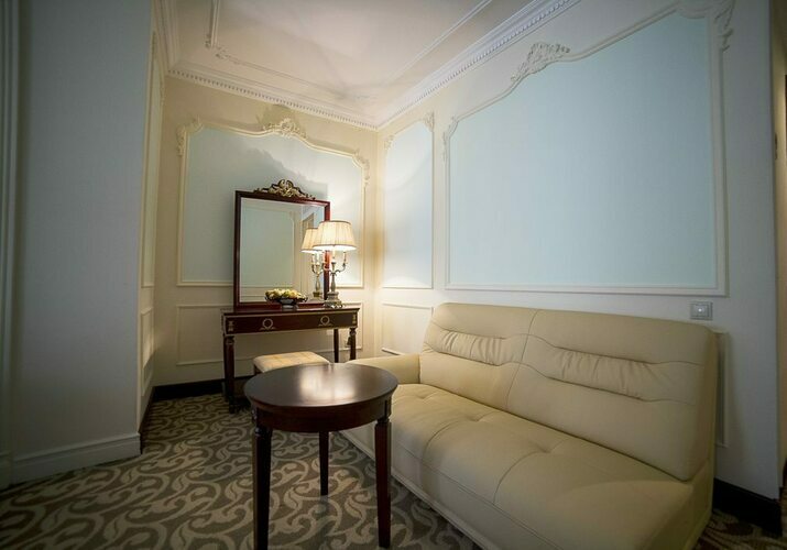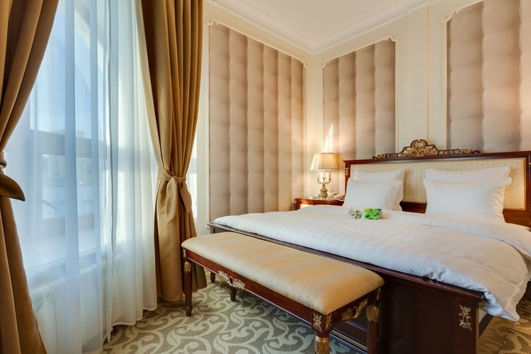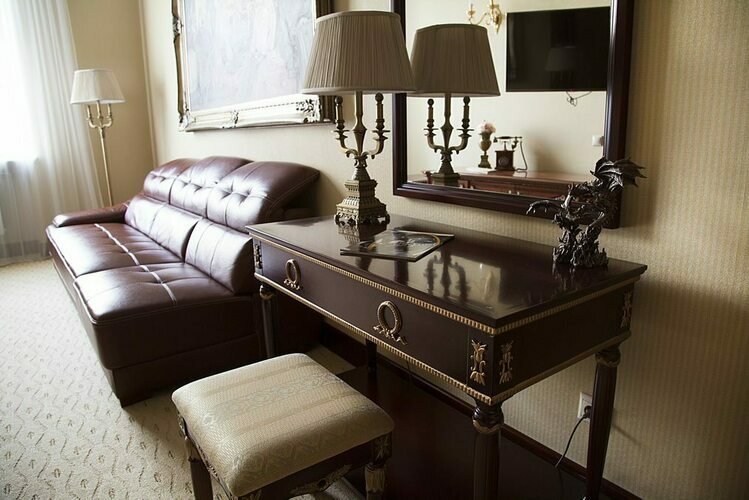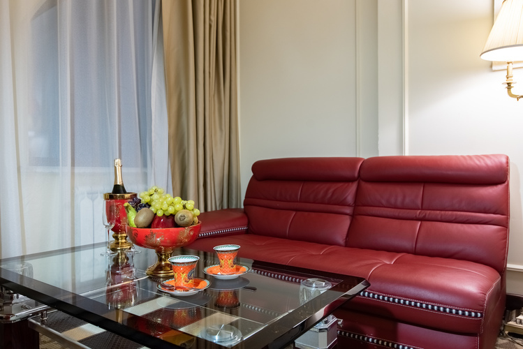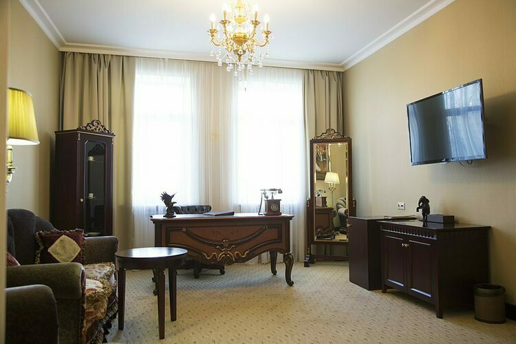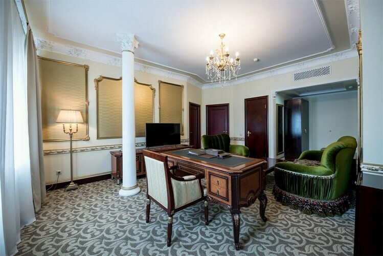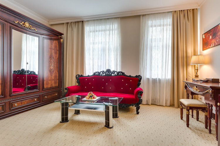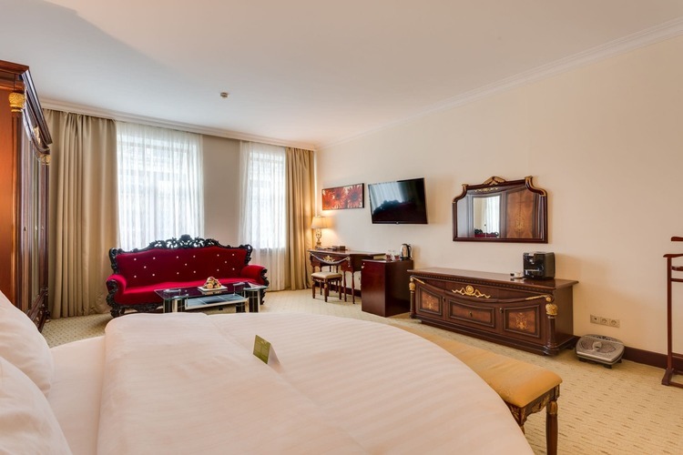 Превосходные Люксы с высокими потолками и великолепными видами. Мебель, текстиль, техника и атрибуты декора, кроме создания комфорта, служат представительским целям. Каждая деталь номера заявляет о высоком статусе гостя, который здесь остановился.