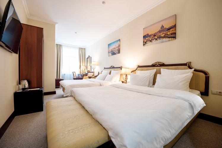 Номер самой востребованной категории с размещением twin. Высокие потолки, классический интерьер, итальянская мебель и премиальный текстиль, вся положенная пятизвездочному номеру техника. Здесь вы найдете комфорт, полноценный отдых и вдохновение для плодотворной работы