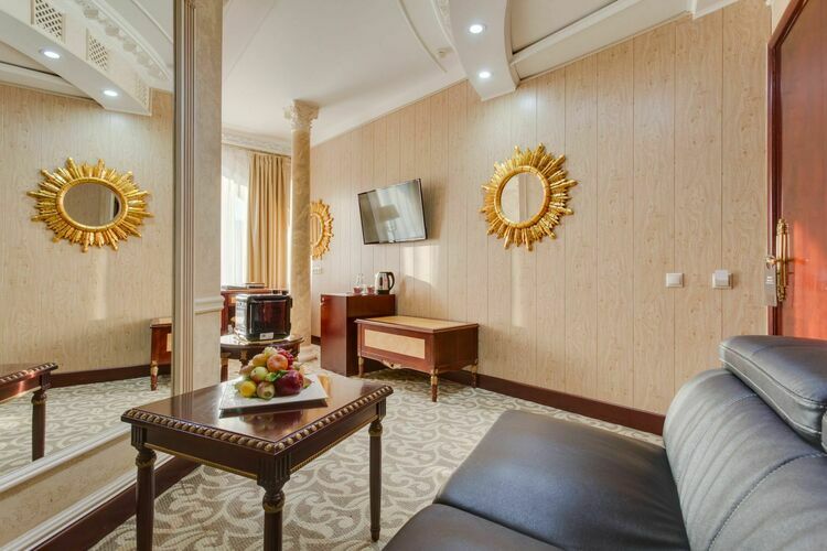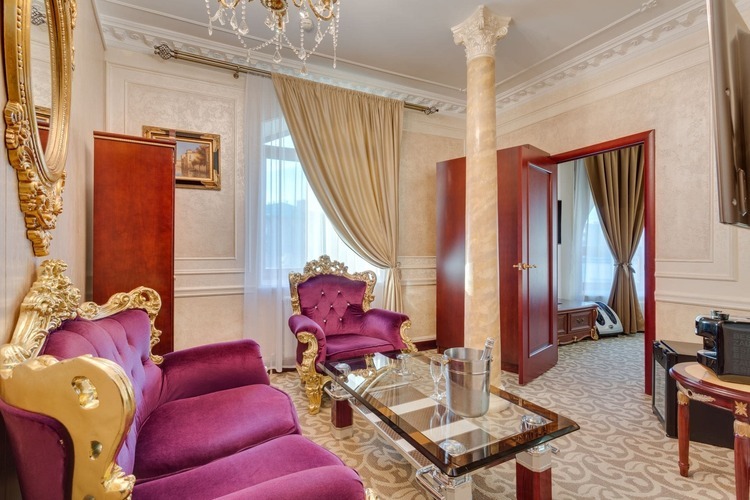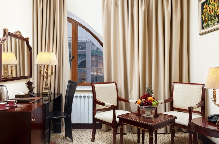 Один из лучших апартаментов Москвы. Номер с видом на Николоямскую улицу украшен хрустальными люстрами, резными орнаментами, антикварной мебелью. В апартаментах имеются 2 спальни, гостиная-кабинет, мини-кухня, ванная комната с гидромассажной ванной-джакузи, 2 раковины, дополнительный гостевой туалет. Идеальный вариант для длительного семейного проживания.
