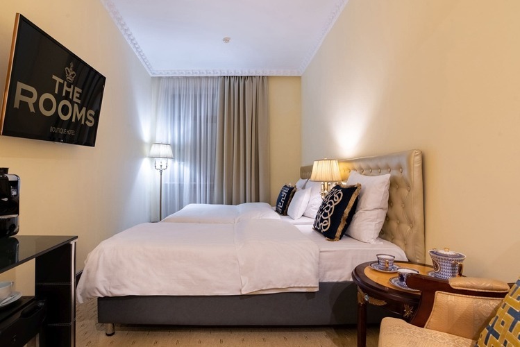 В бутик-отеле более 70 авторских элегантных номеров. Картины великих художников, антикварные аксессуары и Дизайнерская мебель – каждый номер является уникальным и неповторимым, именно поэтому постояльцы в приятном предвкушении хотят возвращаться в «The Rooms Boutique Hotel» вновь и вновь. В номерах установлены кондиционеры, телевизоры, сейфы, Wi-Fi, мини-бары, чайные станции, гладильные принадлежности, фены и одноразовыми гигиеническими принадлежностями.