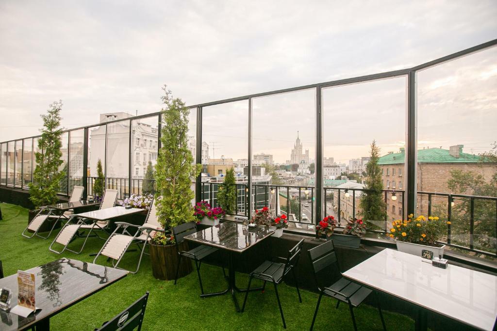 На территории отеля работает круглосуточный ресторан Lounge бар, кафе, бар-ресторан на 6 этаже отеля на открытой террасе, с которой открывается один из самых вдохновляющих видов на Москву и сталинские высотки. Room service доступен круглосуточно.
