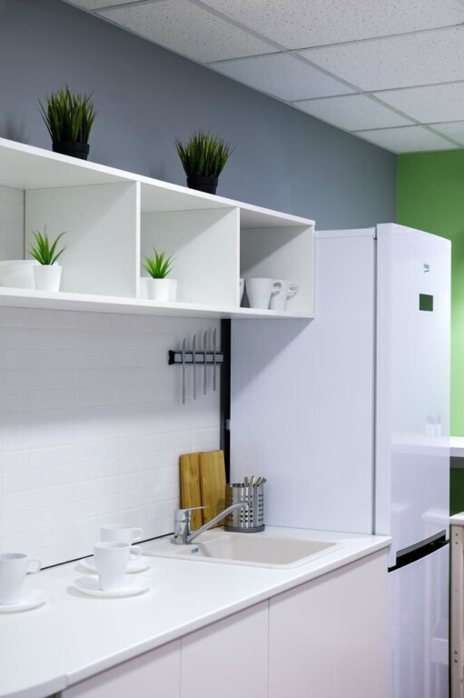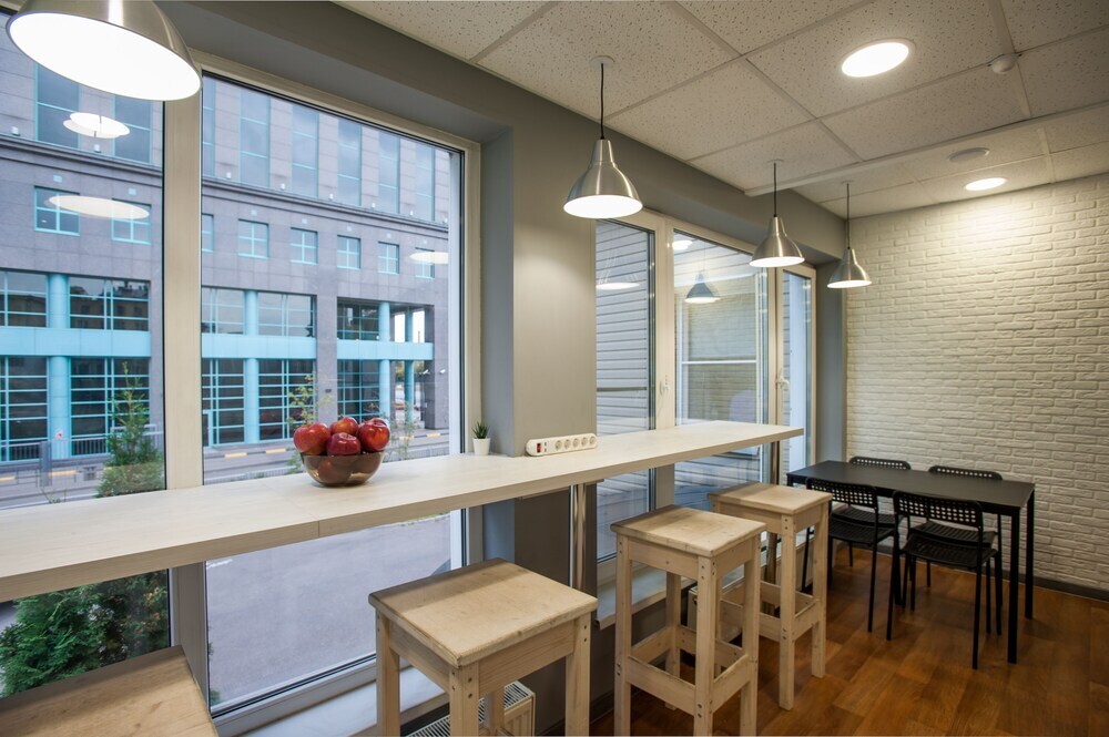 Общая кухня оборудована всем необходимым для самостоятельного приготовления пищи. На территории работает Wi-Fi. В зоне кухни также имеется пространство для работы.