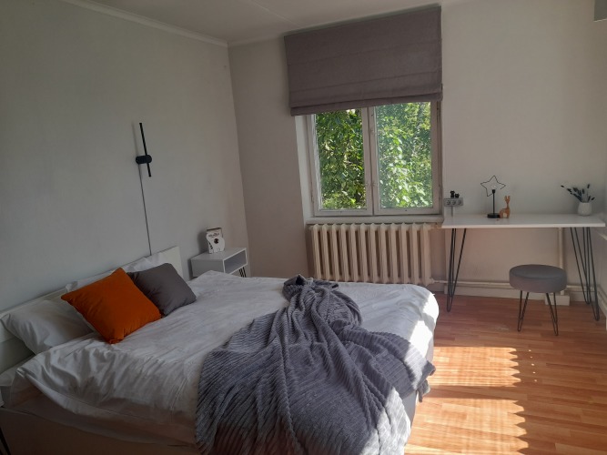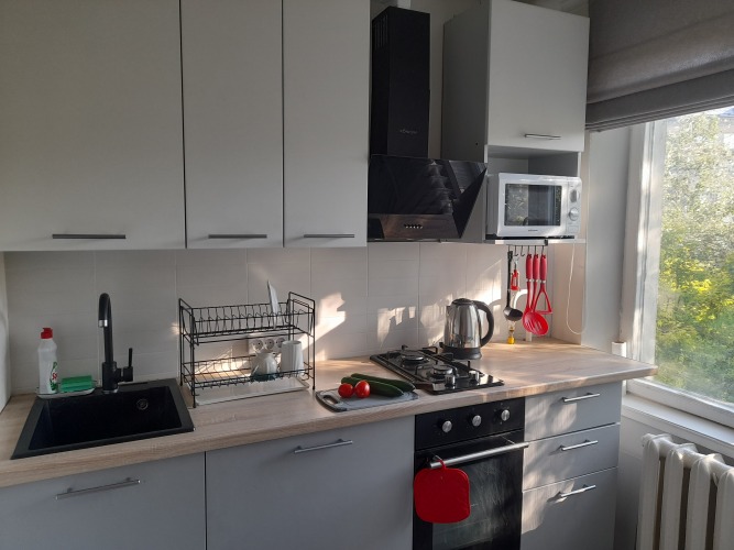 Апартаменты подходят для размещения 4 гостей. Для размещения предоставляется двуспальная кровать, односпальная кровать и кресло-кровать. В апартаментах 2 изолированные комнаты, ванная комната совмещённая. В распоряжении гостей: Wi-Fi роутер, телевизор, холодильник, стиральная машина, варочная газовая панель с вытяжкой, духовой шкаф, микроволновая печь, электрочайник, полотенцесушитель, обогреватель, утюг, фен. Балкон без остекления.