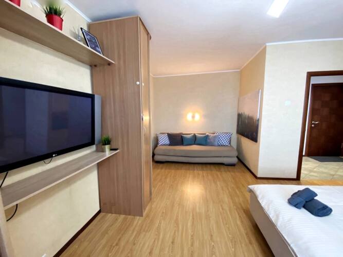 В квартире есть бесплатный Wi-Fi. Специально для автопутешественников организована бесплатная парковка. В квартире возможно размещение с домашним животным.