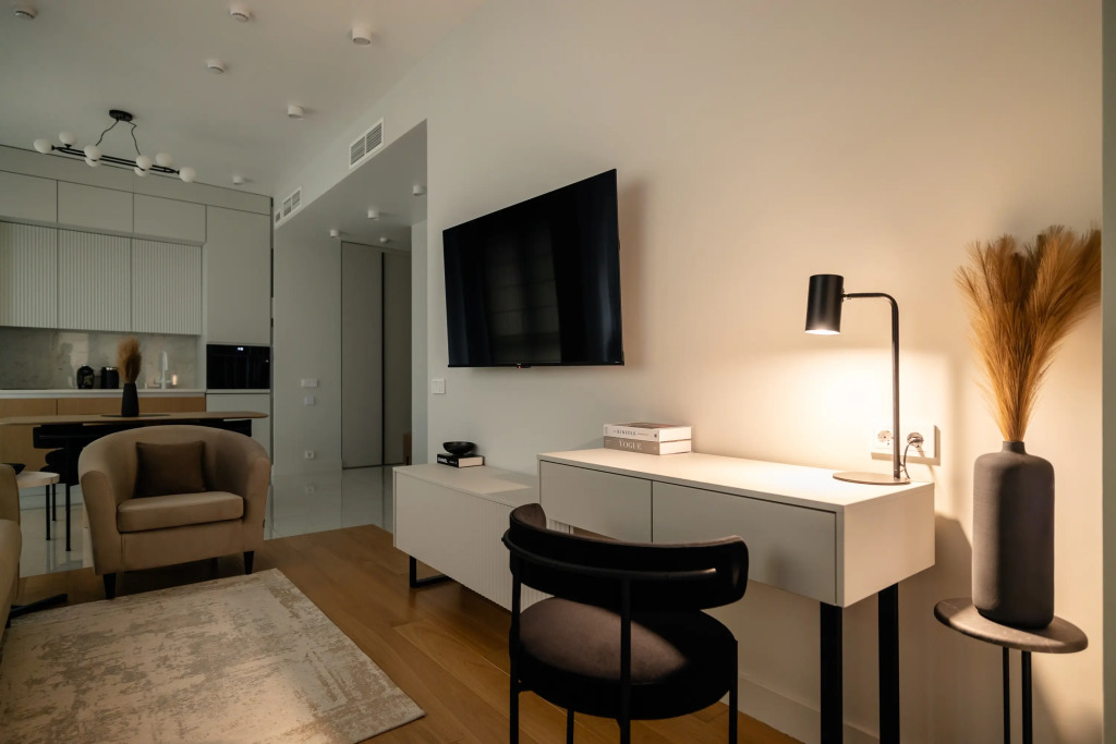 Дом, в котором расположены апартаменты, является новым. По этой причине в доме могут вестись ремонтные работы. Гостям необходимо учитывать это при бронировании.