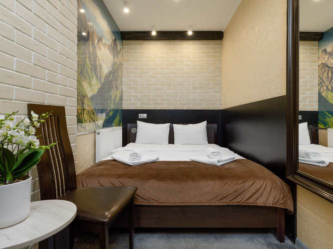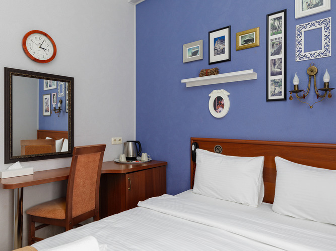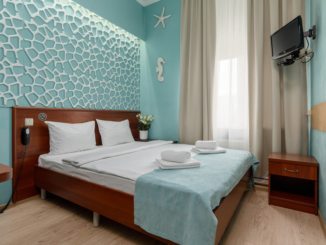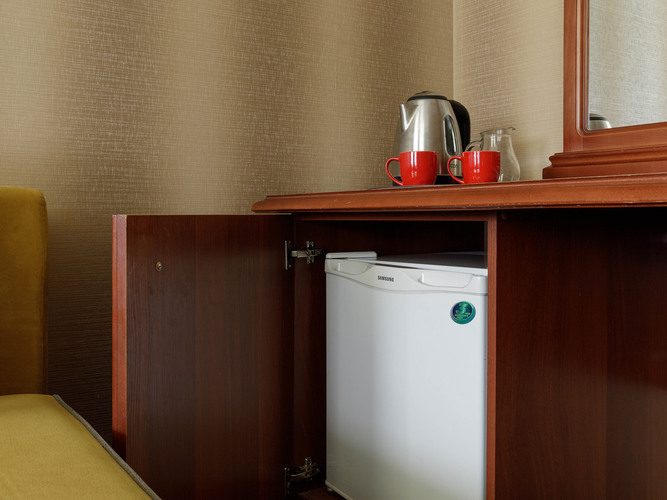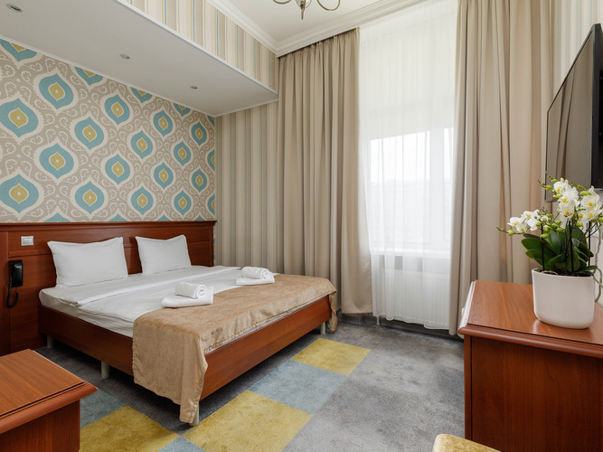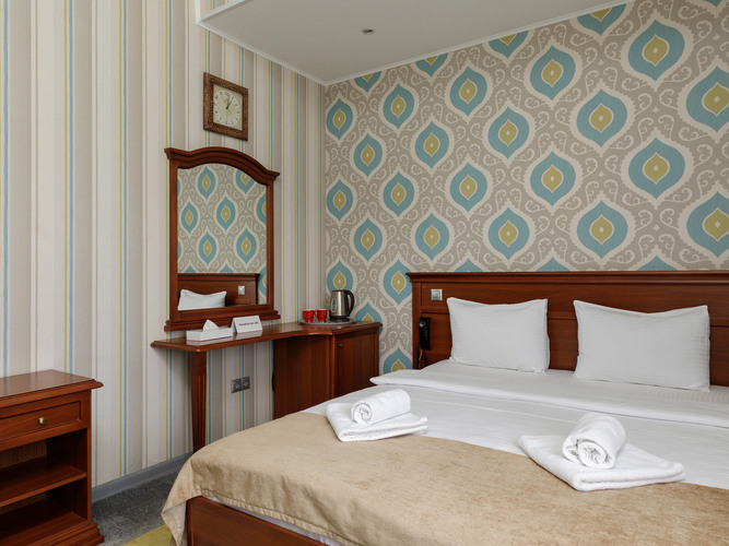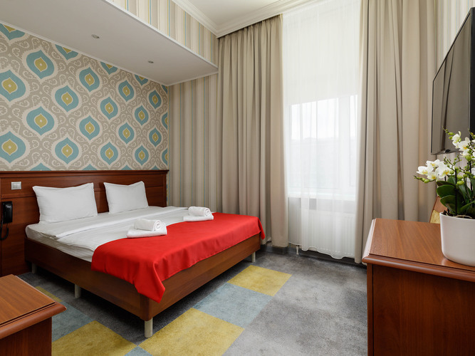 Номера категории Стандарт предлагают атмосферу комфорта и уюта, оформлены в теплых тонах и располагают к спокойному отдыху. Здесь есть все необходимое: двуспальная кровать с мягким пастельным бельем, тапочки и полотенца, прикроватное освещение и плотные ролл-шторы на окне. В каждом номере есть кондиционер, сейф, бесплатный WI-FI, телевизор с плоским экраном, DVD, электрочайник, мини-холодильник, набор посуды и чайный набор. Для связи с ресепшн имеется телефон. В ванной комнате душевая кабина, т