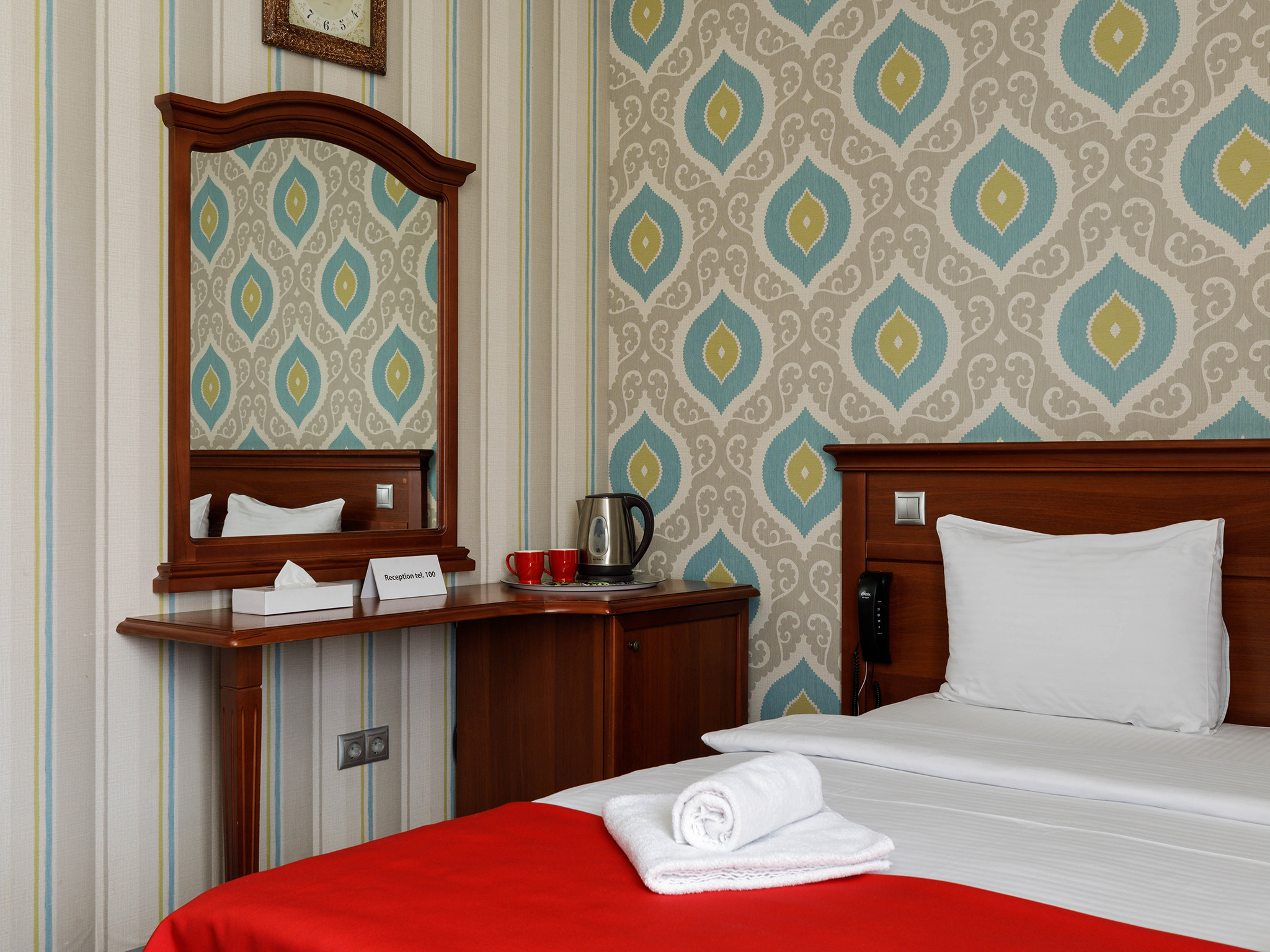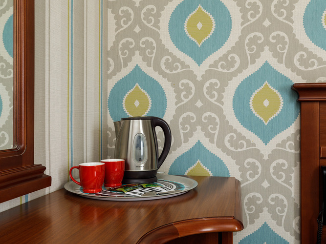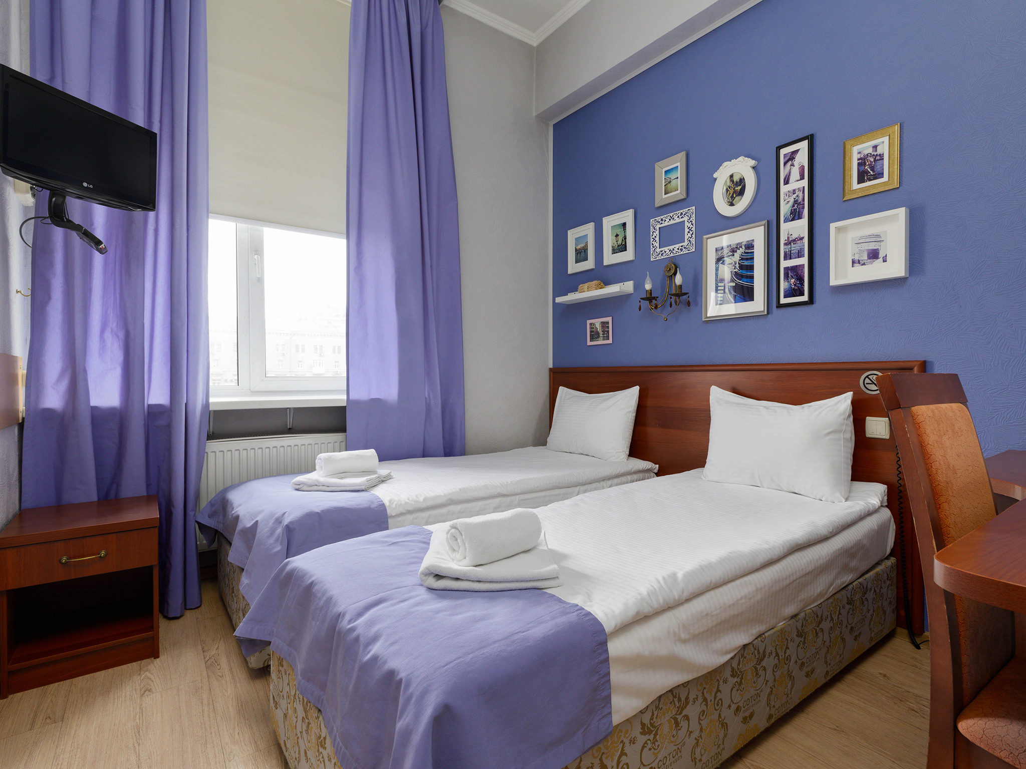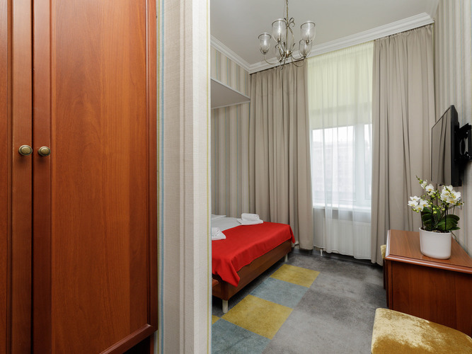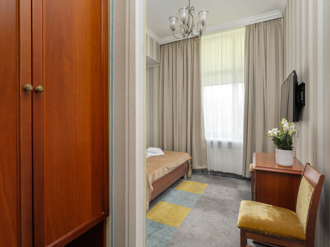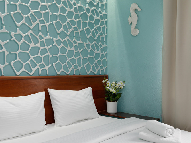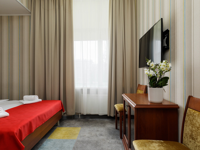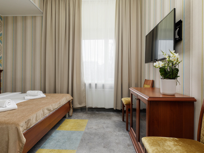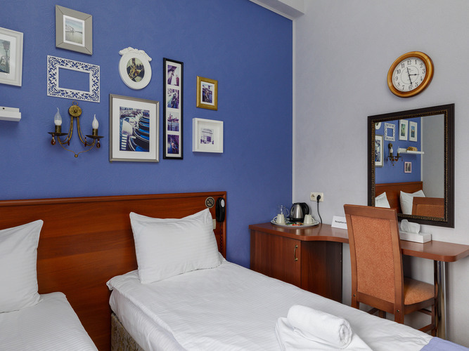 Стандартный номер с 2 кроватями в мягких спокойных тонах предлагает необходимый комфорт для гостей, которым нужны отдельные кровати. В номере: кондиционер, сейф, бесплатный WI-FI, телевизор с плоским экраном, электрочайник, мини-холодильник, набор посуды и чайный набор. Для связи с ресепшн имеется телефон. Две односпальные кровати с удобным матрасом и мягким пастельным бельем, тапочки и полотенца, прикроватное освещение и плотные ролл-шторы на окне. В ванной комнате душевая кабина, туалетно-косм
