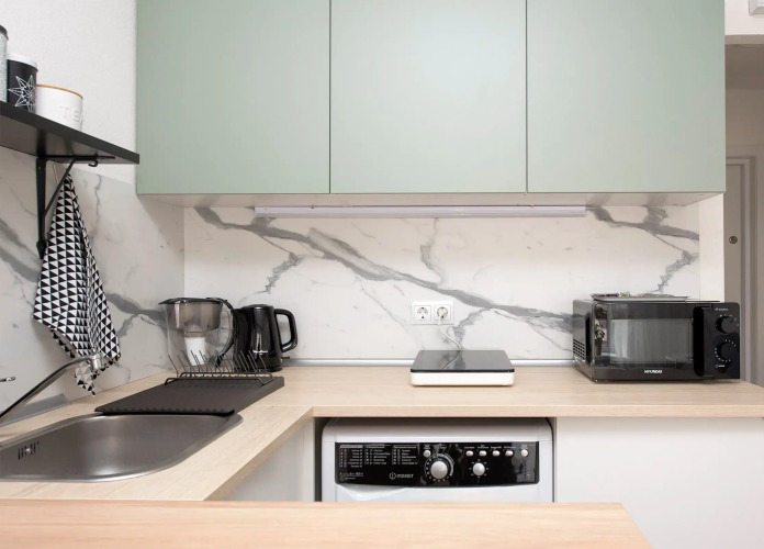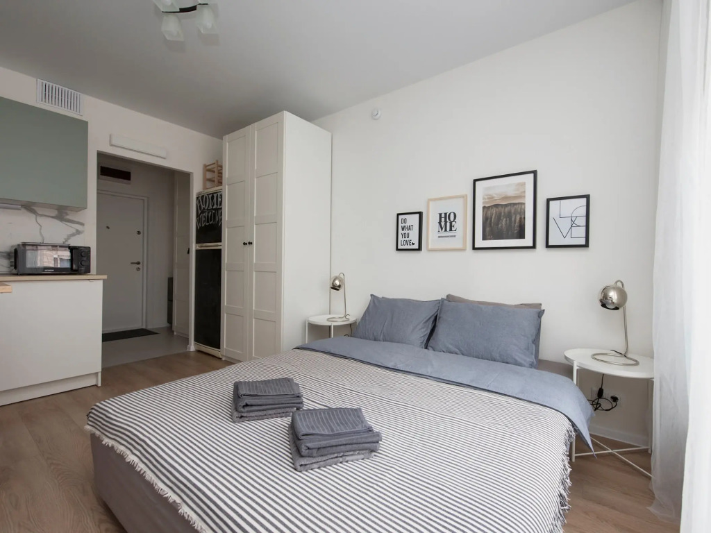 Апартаменты подходят для размещения 3 гостей. Спальные места: кровать 140x200 см и дивaн 80x200 см.