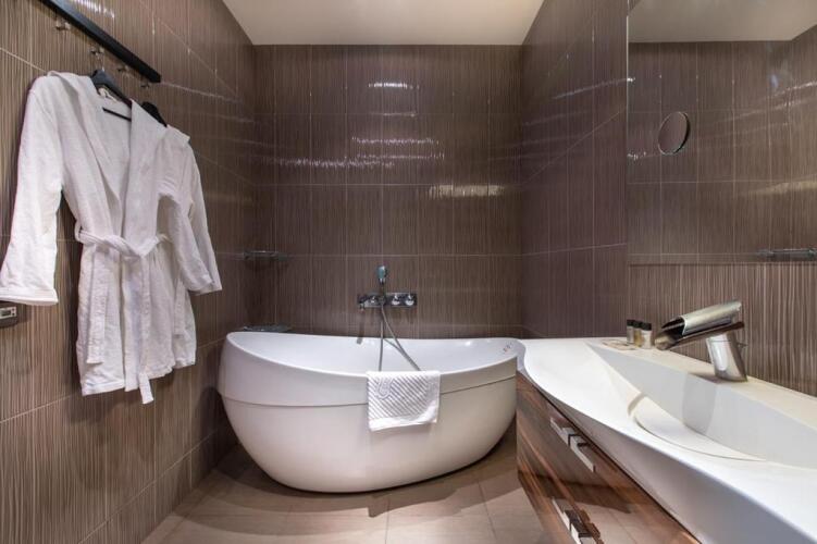 В номере гостей ждут телевизор и халат. Перечисленные услуги есть не во всех номерах.