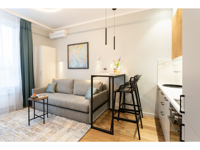 К услугам гостей апартаменты 22 кв м., расположенные в ЖК бизнес-класса «Движение Тушино» с закрытой территорией, детской площадкой, круглосуточной охраной, датчиками пожарной безопасности, и бесплатной парковкой на улице.