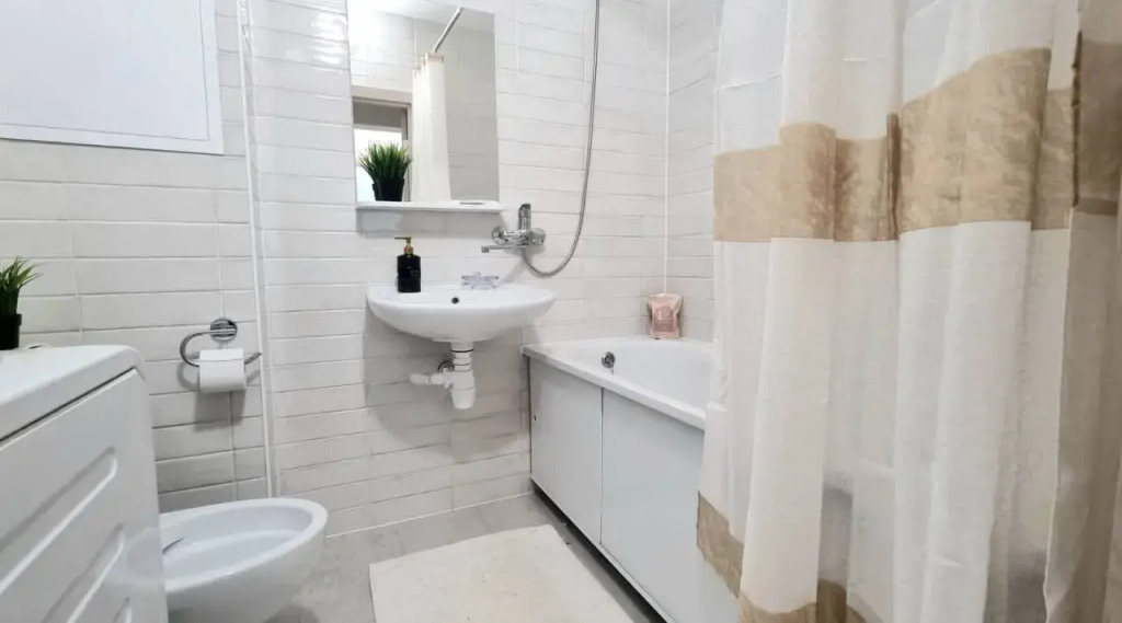 В квартире сделан ремонт, есть 4 спальных места — кровать и диван, 5 спальное место доступно по запросу. Имеется ТВ, Wi-Fi, обогреватель, постельное бельё, полотенца, тапочки, посуда, шампунь, гель для душа. Во дворе имеется парковка под шлагбаум.