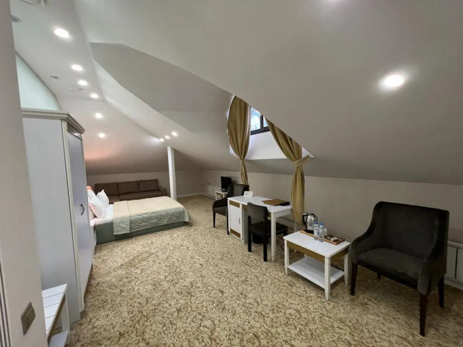 Номер уютно обставлен и оснащён необходимым, чтобы отдохнуть после долгого и насыщенного дня. Имеются будильник, душ, телевизор, мини-бар, халат и тапочки. Перечисленные услуги есть не во всех номерах.