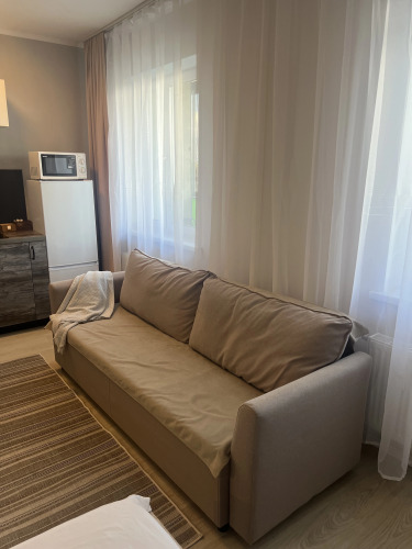 В квартире имеется необходимое для проживания: вентилятор, двухместный раскладной диван, холодильник, микроволновая печь, варочная панель, чайник, посуда, стиральная машина, гладильная доска, утюг, фен, постельное бельё, полотенца и весь текстиль из турецкого хлопка, шампунь, гели для душа, гель для стирки, кондиционер для белья, моющие средства, SMART телевизор, Wi-Fi, книги.