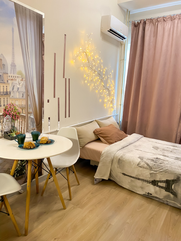 Студия расположена на 4 этаже. Во дворе дома есть открытая платная парковка, а так же бесплатная парковка возле дома.