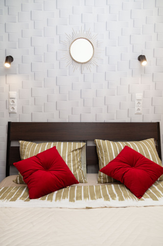 Номер уютно обставлен и оснащён необходимым, чтобы отдохнуть после долгого и насыщенного дня. Имеются телевизор. Оснащение зависит от выбранной категории номера.