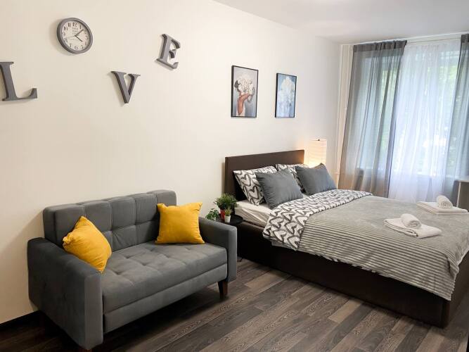 Доступная среда: работает лифт. А ещё в распоряжении гостей индивидуальная регистрация заезда и отъезда и гладильные услуги. Сотрудники апартаментов поддержат беседу на английском и русском.