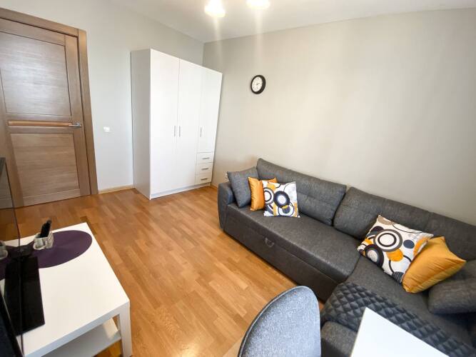 Берите питомца с собой. В апартаментах возможно размещение с домашним любимцем. Сотрудники апартаментов по запросу организуют гостям трансфер. Удобно для гостей с ограниченными возможностями: на верхние этажи гостей поднимает лифт. А ещё в распоряжении гостей индивидуальная регистрация заезда и отъезда, гладильные услуги и консьерж.