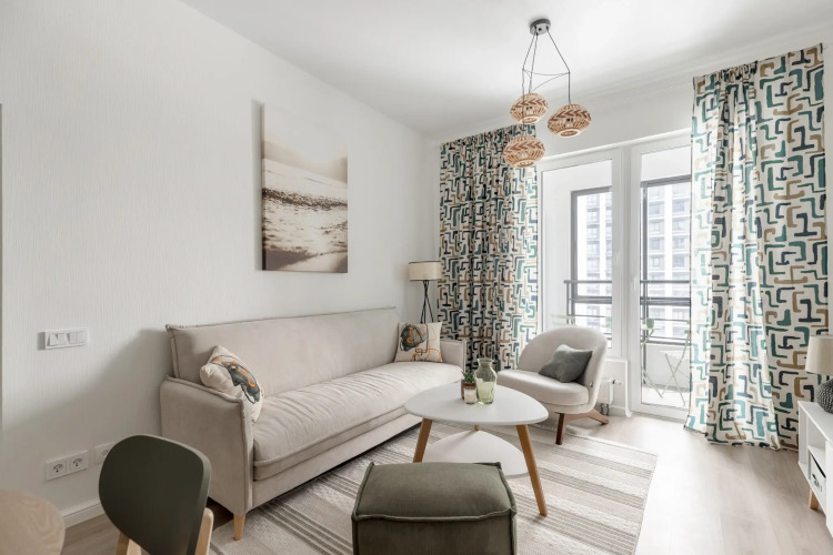 Квартира «В Стиле Сканди Бохо» расположена в Москве. Рядом находится станция метро «Аминьевская». На первом этаже дома расположены: продуктовые магазины, аптеки, салоны красоты. По соседству с жилым кварталом находится Тропарёвский лесопарк. На метро гости могут доехать до Москва-Сити, МГУ им. М.В. Ломоносова, парка Победы и других достопримечательностей города Москва. Квартира расположена в 1 км от МКАД в Вестердам.