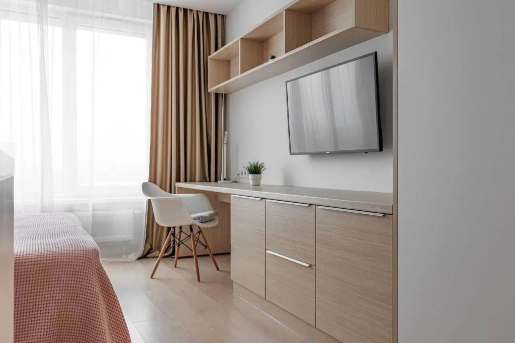 В номере вы найдёте телевизор. Оснащение зависит от выбранной категории номера.