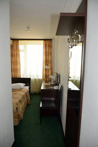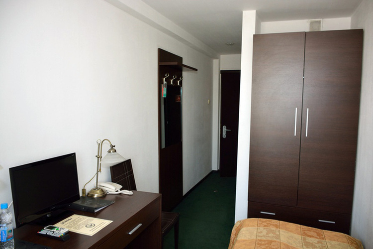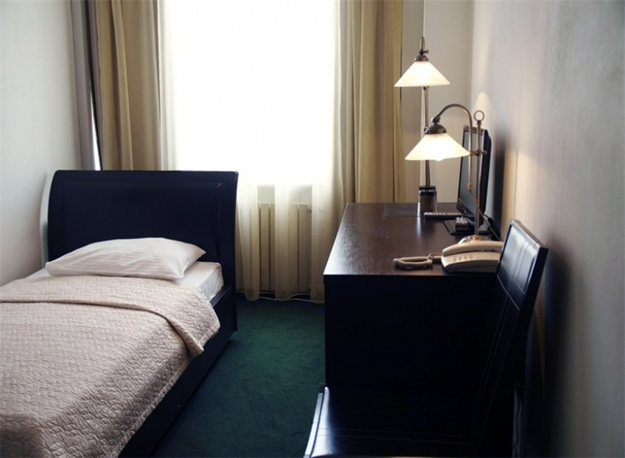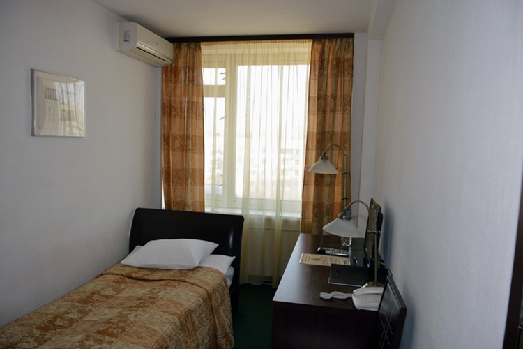 Стандартный номер площадью 16 кв. м, предназначенный для проживания одного гостя, оформлен в европейском стиле. В помещении располагается эргономичная односпальная кровать, шкаф, письменный стол, а также качественная техника, в том числе ЖК телевизор со спутниковыми каналами, кондиционер и холодильник.