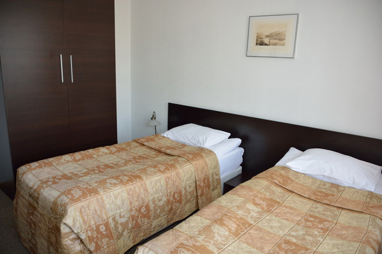 Для проживания двоих путешественников предусмотрен уютный номера категории twin. На площади 19 кв. м расположилась современная мебель (2 односпальные кровати, вместительный шкаф, рабочий стол) и новая техника (ЖК телевизор, индивидуальный кондиционер, холодильник).