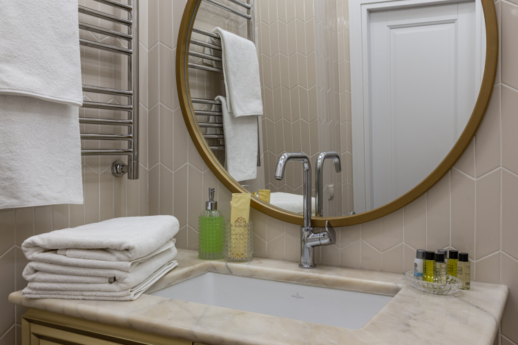 В номере вы найдёте телевизор. Оснащение зависит от выбранной категории номера.