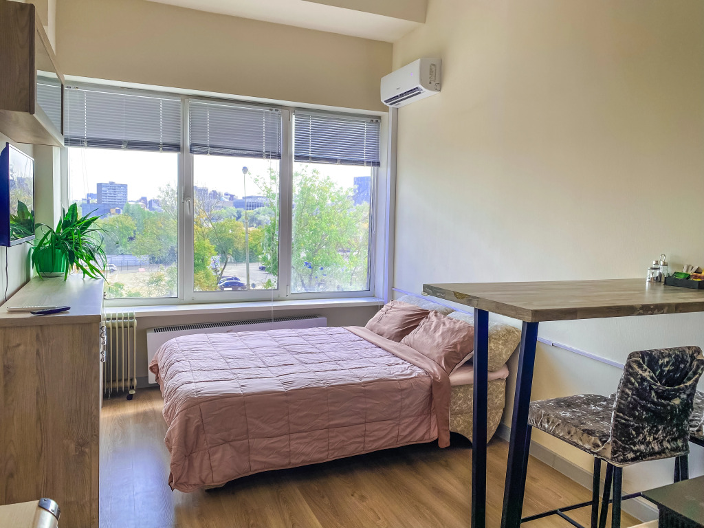 Студия расположена на 2 этаже. Во дворе дома есть открытая платная парковка, а так же бесплатная парковка возле дома.
