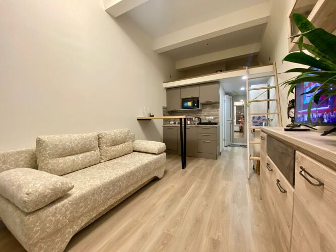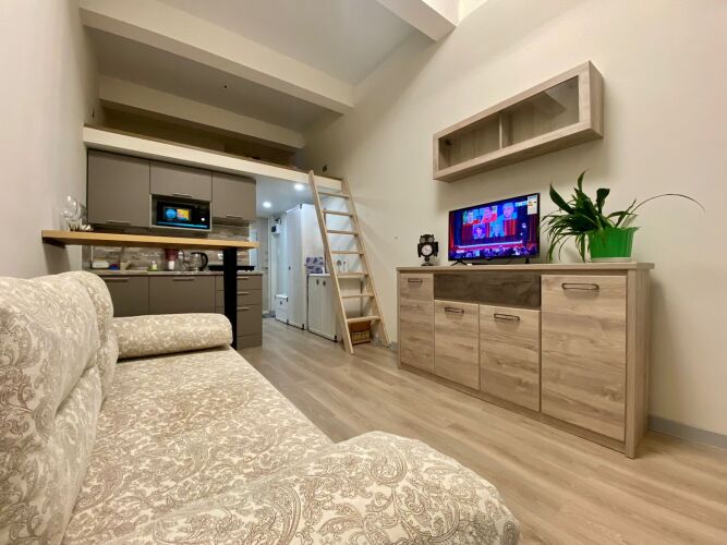 В апартаментах гостям доступны: двухместный диван, матрас на втором этаже, Wi-Fi, цифровое ТВ, постельное бельё и полотенца на каждого гостя.