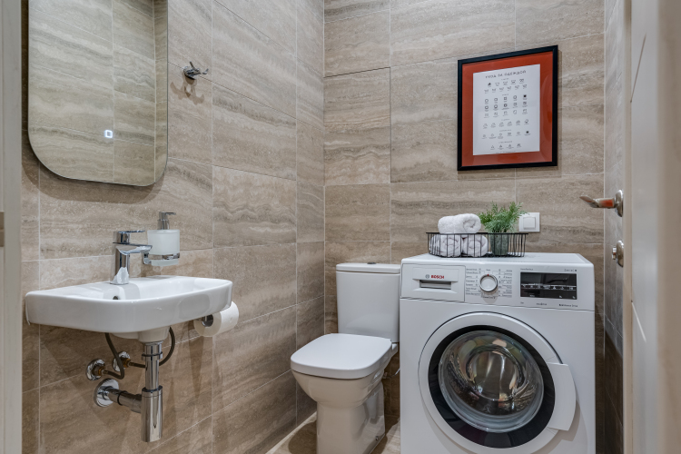 Для удобства гостей имеются 2 санузла, ванная, стиральная машина и все необходимые косметические принадлежности Гостям предоставляются: бесплатный Wi-Fi и Smart TV.