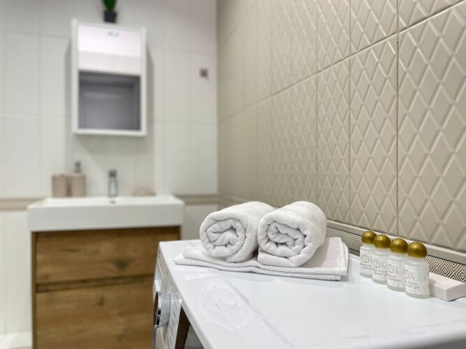 В апартаментах есть бесплатный Wi-Fi. Kухня oснащенa техникой. В комплексе находится бесплатный спортзал. Удобно для гостей с ограниченными возможностями: на верхние этажи гостей поднимает лифт. А ещё в распоряжении гостей гладильные услуги. Сотрудники апартаментов поддержат беседу на русском.
