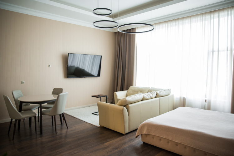 Доступная среда: работает лифт. Гостям доступны и другие услуги. Например, гладильные услуги. Сотрудники апартаментов поддержат беседу на русском.