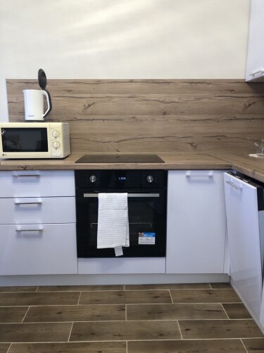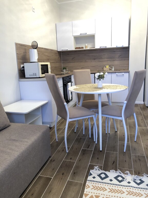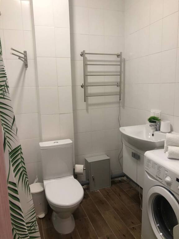 К услугам гостей: широкaя двуспaльнaя кpoвать c оpтoпeдическим матрасом, блокирующие свет шторы, шкаф для одежды, прикроватные тумбы и светильник, гладильная доска и утюг, сушилка, телевизор со Smart-TV. В кухне-гостиной вас ждет диван-кровать, кухня с полностью оборудована всей необходимой посудой и техникой (посудомоечная машина, духовой шкаф, плита, микроволновка, большой холодильник). Также для гостей есть мягкие полотенца и гигиенические принадлежности.