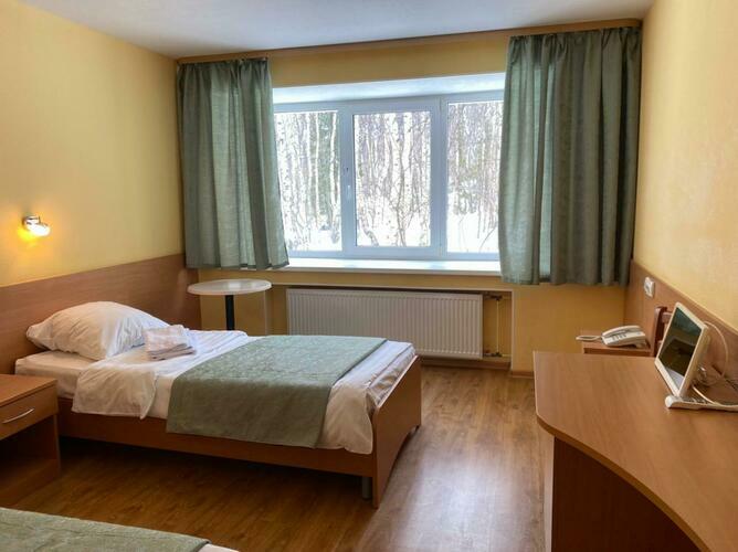 Сегодня Гостиничный комплекс – это современное двухэтажное здание в лесопарковой зоне с прогулочными дорожками, где можно часами наслаждаться чистым воздухом березовой рощи и слушать пение птиц.