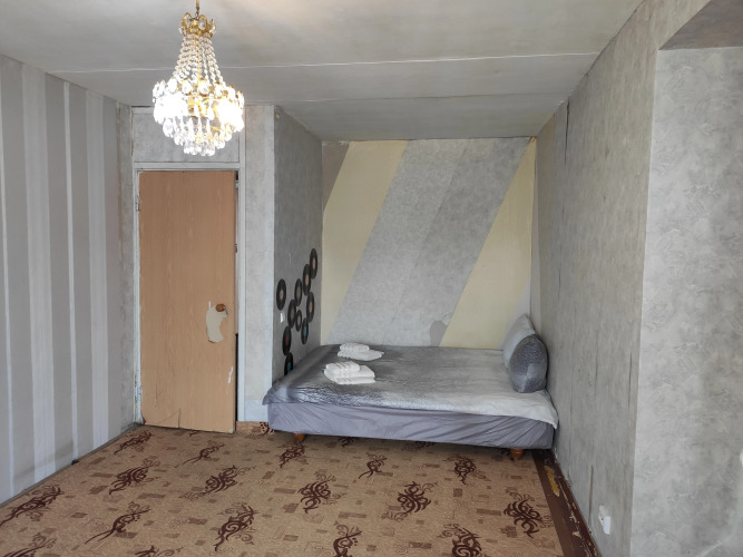 В комнатах: двуспальная кровать king-size размером 180 см на 200 см, раскладной диван queen-size 160 см на 200 см.