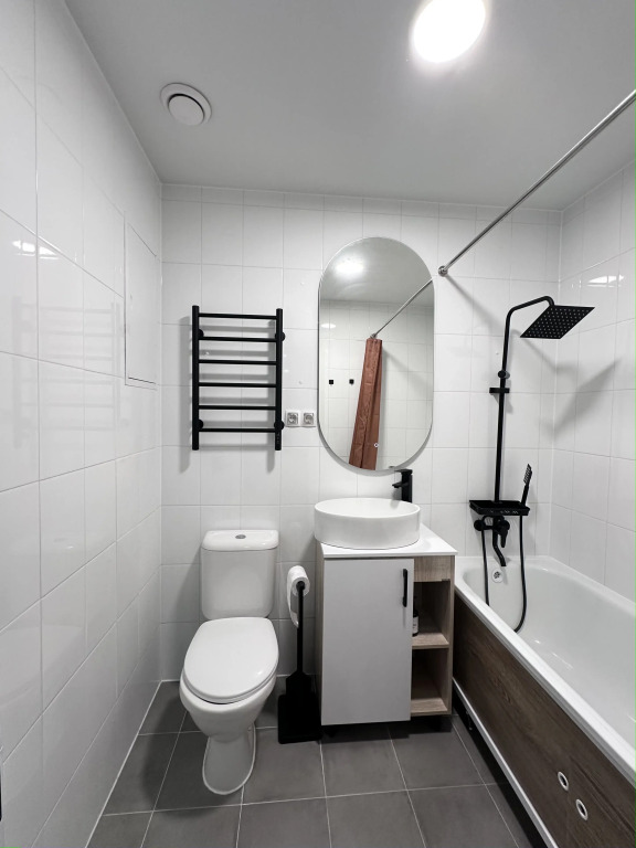 В квартире имеется кухня-гостиная и спальня с двуспальной кроватью и раскладным диваном. В распоряжении гостей Wi-Fi и Smart TV, ванная комната с полотенцами, жидким мылом, шампунем, гелем для душа, феном, утюг и сушилка.
