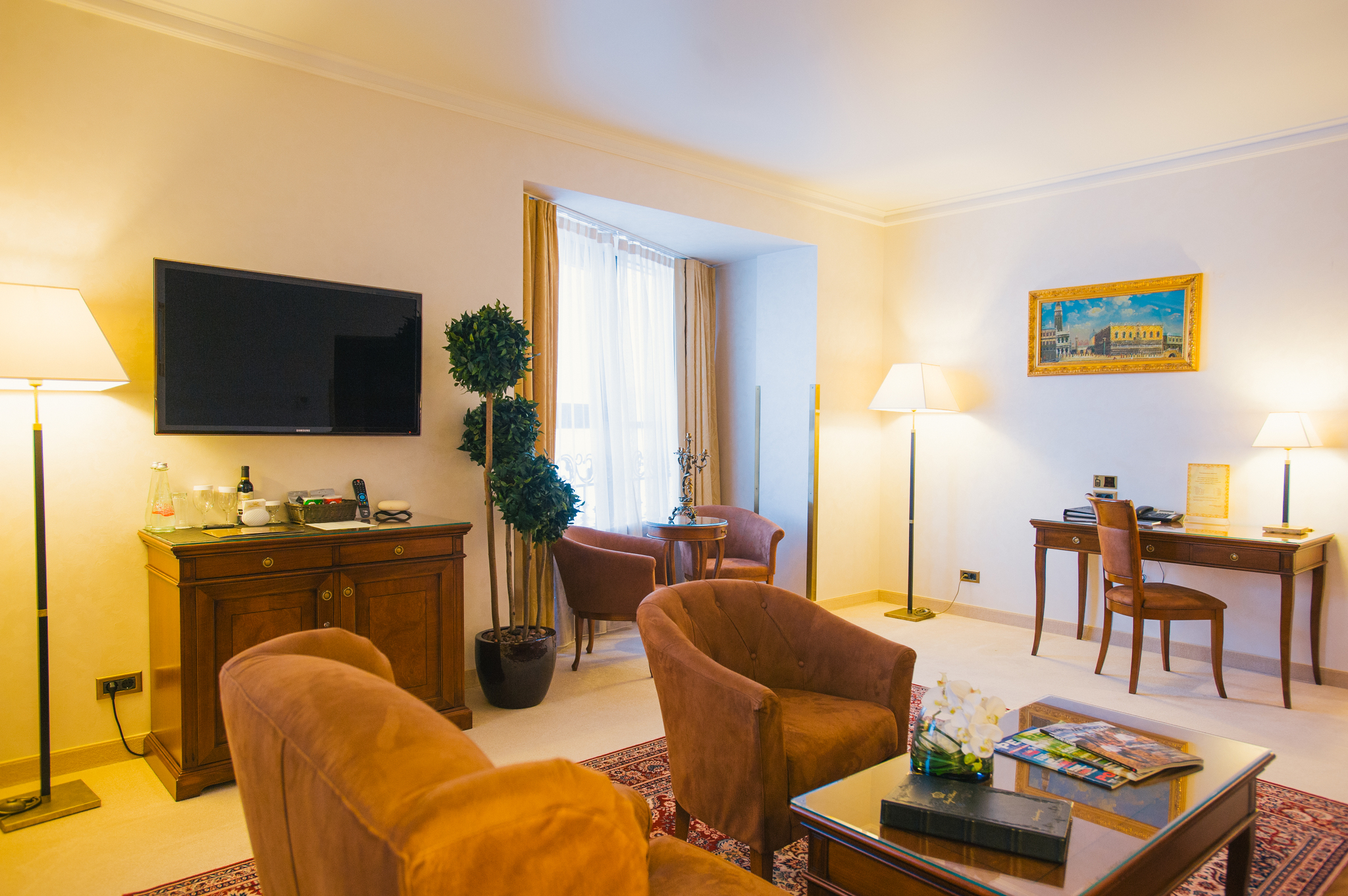 Номера оформлены в классическом итальянском стиле и располагают кондиционером, антикварной мебелью и телевизором с плоским экраном и кабельными каналами. В собственной ванной комнате с душевой кабиной предоставляются фен и бесплатные туалетные принадлежности (шампунь, мыло, халат, тапочки и набор полотенец).