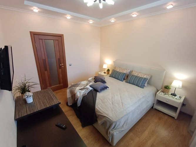 Комнаты в квартире изолированные, санузел раздельный, лоджия застеклённая. Гостям доступны: встроенный кухонный гарнитур с встроенной электрической панелью на 4 конфорки и встроенным духовым шкафом, двухкамерный холодильник, стиральная машина, микроволновая печь, электрический чайник, посуда, обеденная зона, чай и кофе.