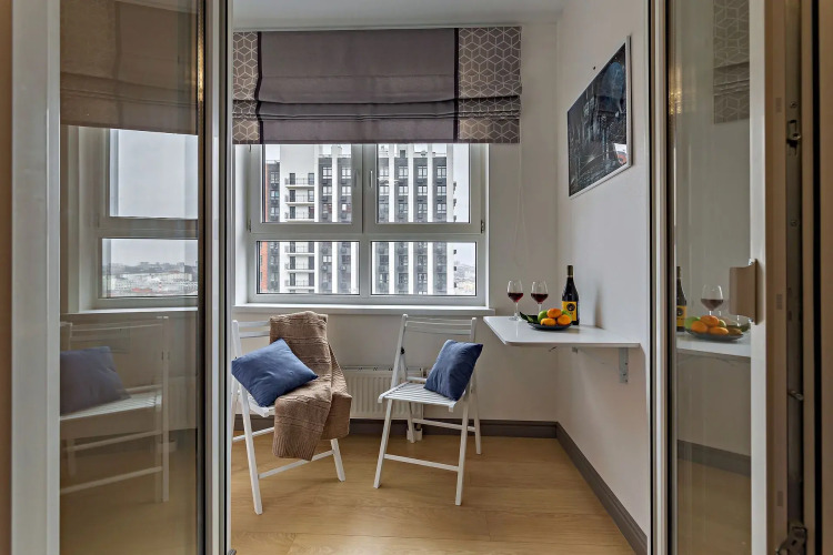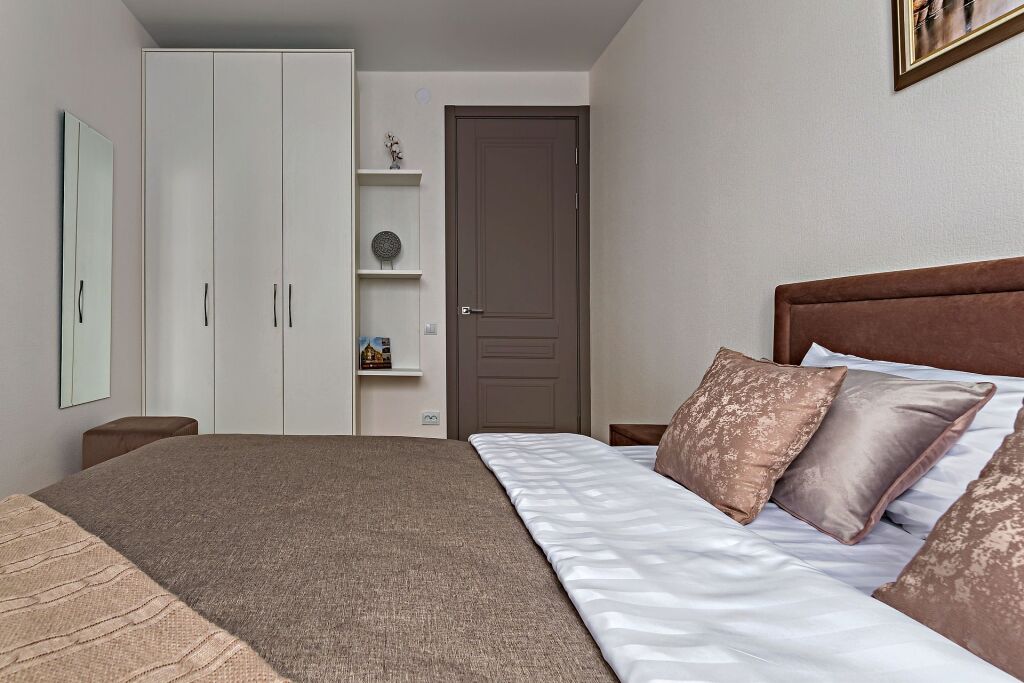 В апартаментах имеется: водонагреватель, двуспальная кровать, диван-кровать, шкаф, панорамный балкон со стульями и столом, стиральная машина, фен, утюг, гладильная доска, сушилка для одежды, телевизор со Smаrt ТV и высокоскоростной Wi-Fi.