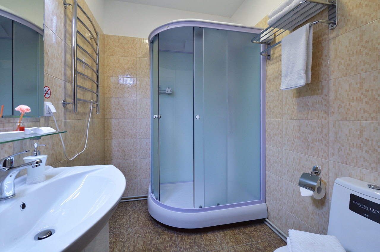 Трехместный номер эконом класса, с одной двухспальной или 2 односпальными кроватями + диван (двухспальный). Возможное размещение 2 взрослых+ ребенок или 3 взрослых. Номер с душевой кабиной и туалетными принадлежностями. Оборудован системой кондиционирования, мини-холодильником, спутниковым ТВ и бесплатным WI-FI.